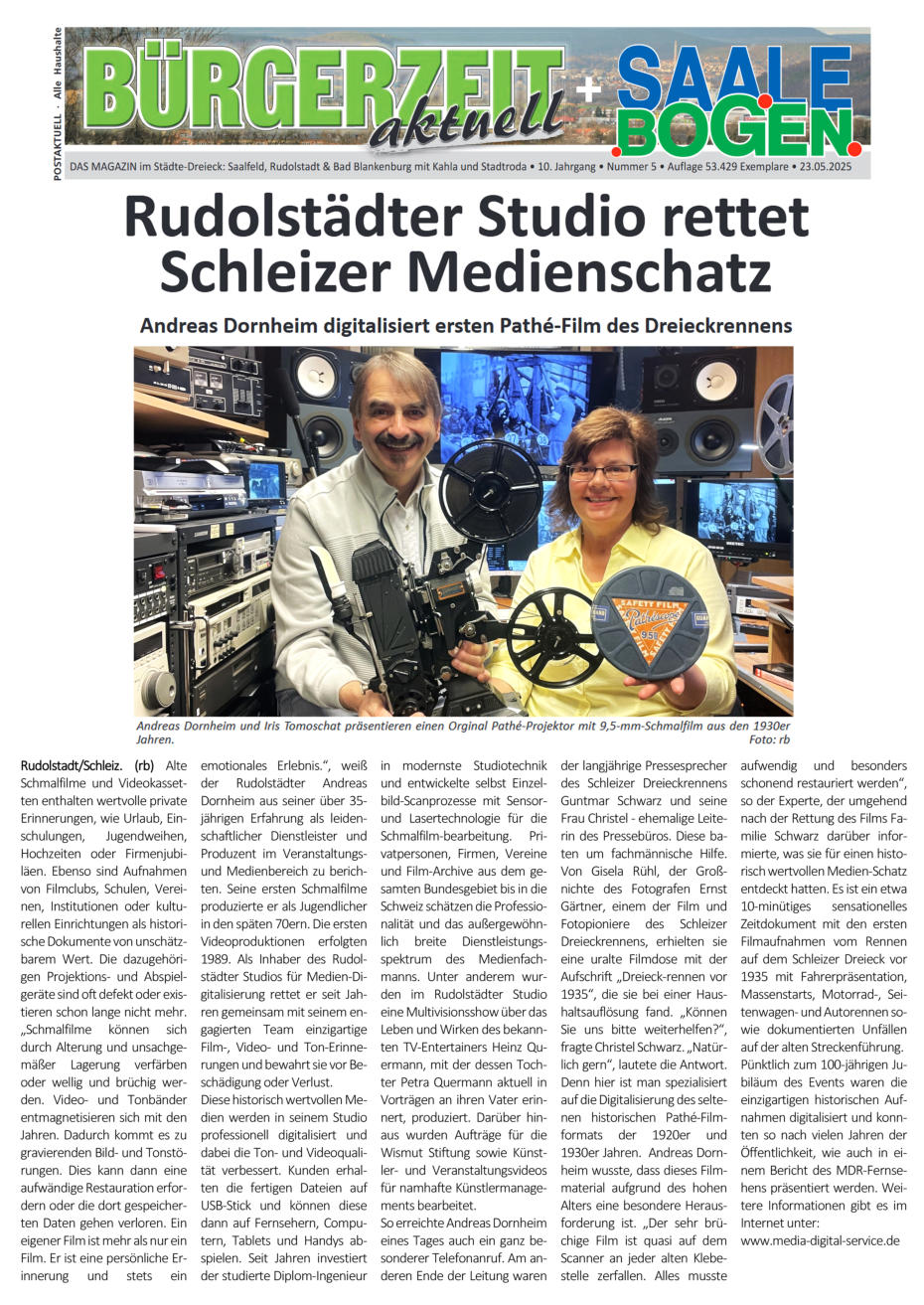 Quelle: Bürgerzeit aktuell + SAALEBOGEN vom 23.05.25; Text + Foto: Redakteur Roberto Burian